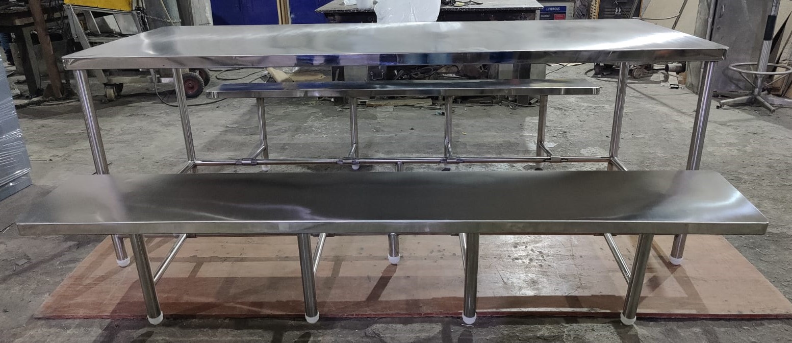 In summary, the 8-seater table with foldable benches is a functional and adaptable dining furniture set that prioritizes space-saving and convenience. Its durable construction, efficient foldable design, and ability to promote communal dining experiences make it a valuable addition to various settings, enhancing the overall dining experience for a group of eight individuals.