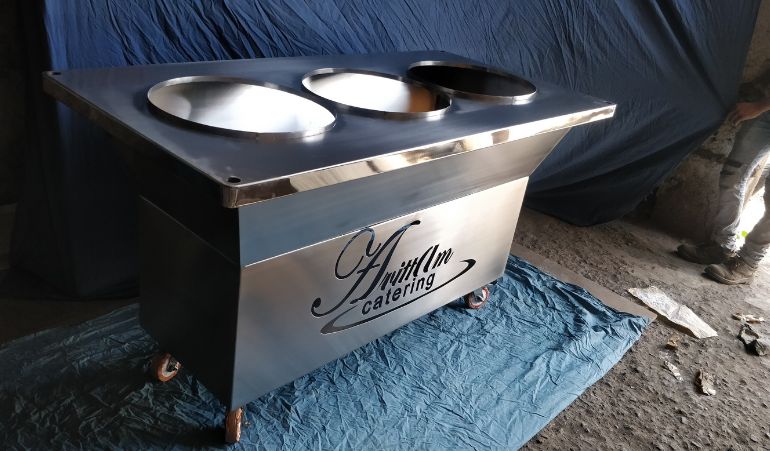 The design of a catering counter is highly customizable to suit specific catering needs. It typically features a countertop, which can be made of materials like stainless steel, marble, or wood, providing ample workspace for food preparation and presentation. Underneath, there are storage compartments or shelves to store utensils, ingredients, and equipment, keeping everything within reach and well-organized.