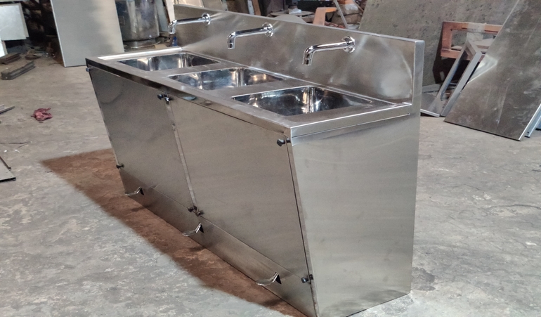 In summary, the Three Sink Unit is a fundamental component in commercial kitchens, offering an efficient and organized way to wash, rinse, and sanitize dishes and utensils. Its design ensures compliance with hygiene standards and facilitates a seamless dishwashing process essential for maintaining cleanliness and order in food-related establishments.