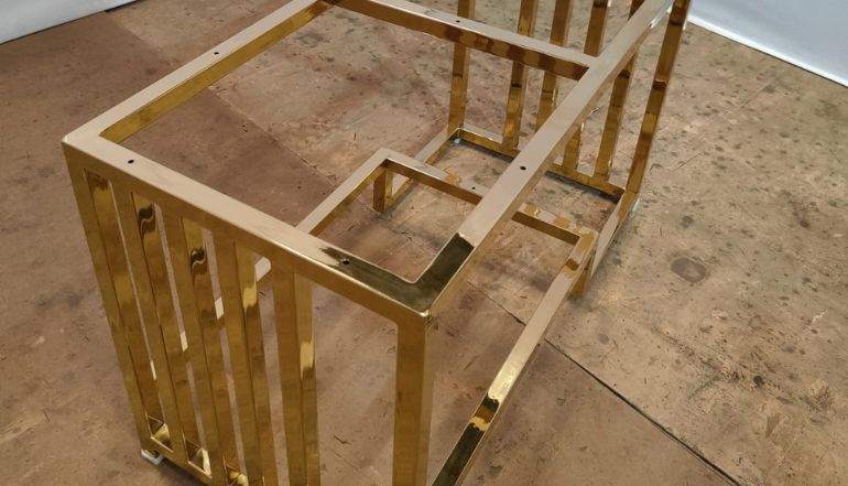 The PVD coating process involves depositing a thin layer of gold material onto the stainless-steel surface in a vacuum environment. This method creates a hard, resilient, and visually appealing finish that resembles the appearance of genuine gold. The coating enhances the stainless-steel frame, giving it a luxurious and elegant golden hue while maintaining the durability and strength of stainless steel.