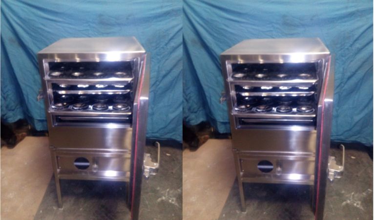 The Idli Steamer typically comprises a multi-tiered stainless steel container structure. The bottommost tier contains water that, when heated, produces steam. The upper tiers, with perforated trays, hold the idli batter, allowing the steam to cook the batter into soft, fluffy idlis.