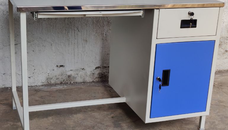The table may come in various sizes and designs to suit specific needs. Some models feature additional shelves or compartments for storage, enhancing its functionality and organization. Its adaptability and durability make it a valuable piece of furniture in diverse settings.