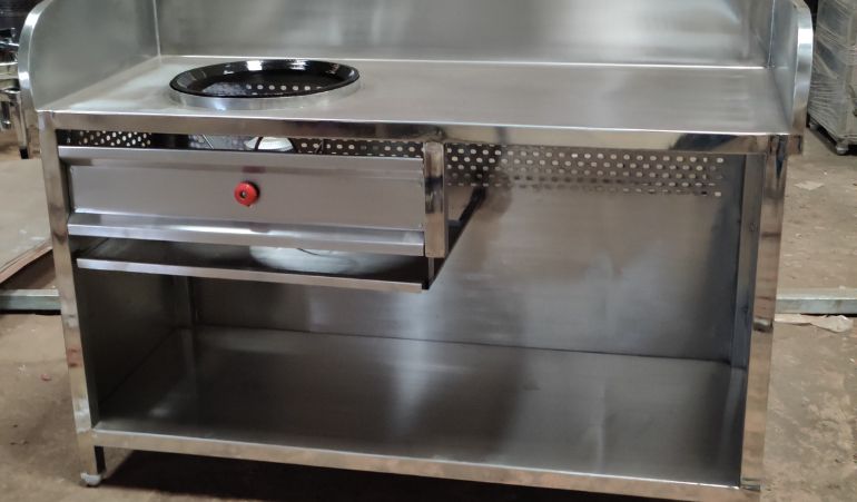 This multifunctional unit is designed to optimize kitchen space and workflow, particularly in compact kitchens or areas where space is a premium. The counter provides ample room for food preparation, chopping, and arranging ingredients, while the integrated stove allows for cooking or heating meals without the need for a separate stove unit.