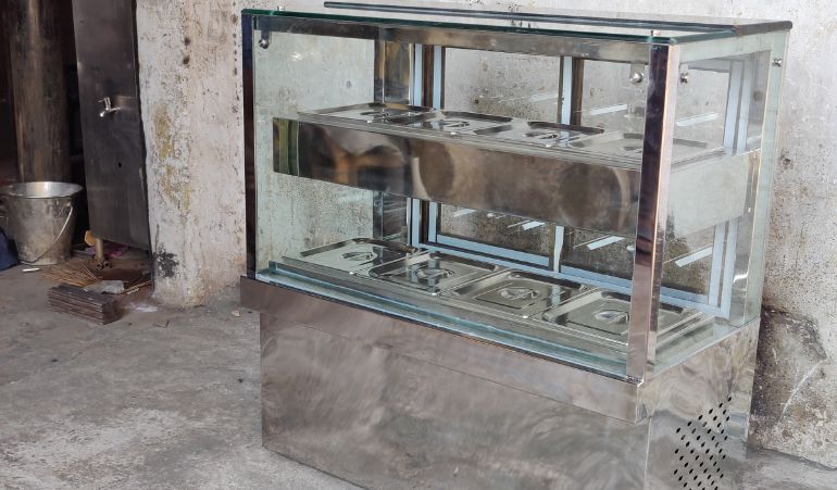 The Rasmalai counter is designed to showcase this dessert and offer it to customers in an appealing and hygienic manner. It usually features a refrigerated display to maintain the freshness and quality of the Rasmalai, ensuring it's served at the right temperature.