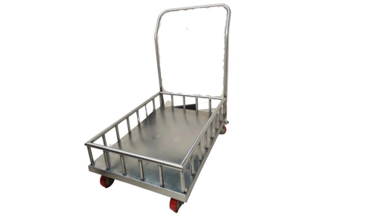 A material handling trolley is a piece of equipment used to transport materials, goods, or products within a workplace or industrial setting. It has a platform or a tray that is attached to wheels or casters, which make it easy to move and steer. Material handling trolleys can be used for carrying heavy, bulky, or small items, depending on their design and capacity. There are some are some key features and uses of material handling trolleys:Versatility: Material handling trolleys are versatile and can be used in a wide range of industries, including manufacturing, warehouses, construction, healthcare, and retail. Types: There are various types of material handling trolleys, including platform trolleys, hand trucks, pallet jacks. Load Capacity: Trolleys come in different load capacities, so it's essential to choose the right one for your specific needs. Maneuverability: Trolleys are designed for easy maneuverability, often equipped with swivel casters or wheels that allow operators to navigate tight spaces and corners effortlessly. Safety Features: Many trolleys have safety features such as brakes, locking mechanisms, and ergonomic handles to ensure the safe transportation of goods and prevent accidents.
