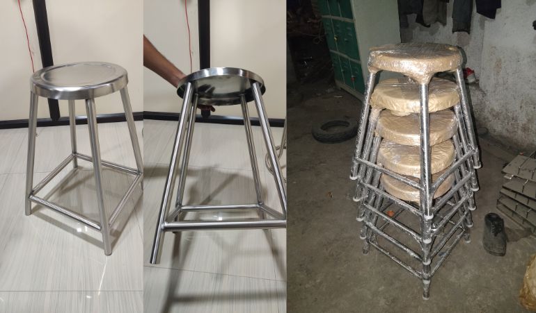 The SS Round Stool, where "SS" typically stands for stainless steel, refers to a stool constructed primarily from stainless steel material. Stainless steel is chosen for its robustness, corrosion resistance, and sleek aesthetic, making it a popular choice in various furniture designs.