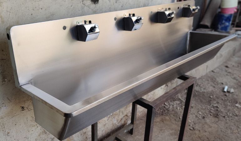 The Stainless Steel 4-Tap Wash Basin is a durable and efficient solution for commercial or high-traffic restroom facilities. Crafted from high-quality stainless steel, this wash basin is designed to withstand heavy usage while maintaining a sleek and modern appearance.